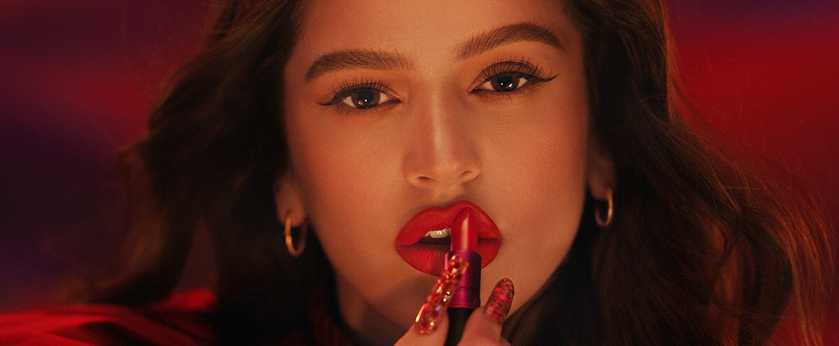 The newest shade of VIVA GLAM Lipstick VG26, a fiery orange-red, launches today and here, global ambassador Rosalía talks all things M·A·C, VIVA GLAM, makeup and using her influence for good…