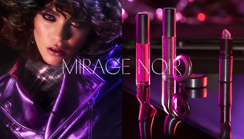 Do a double take in a noir mirage that blurs reality. Step into the electric haze of an endless balmy night, where shade-shifting hues trip the mind in ultra-violets, magentas and steamy bronzes.