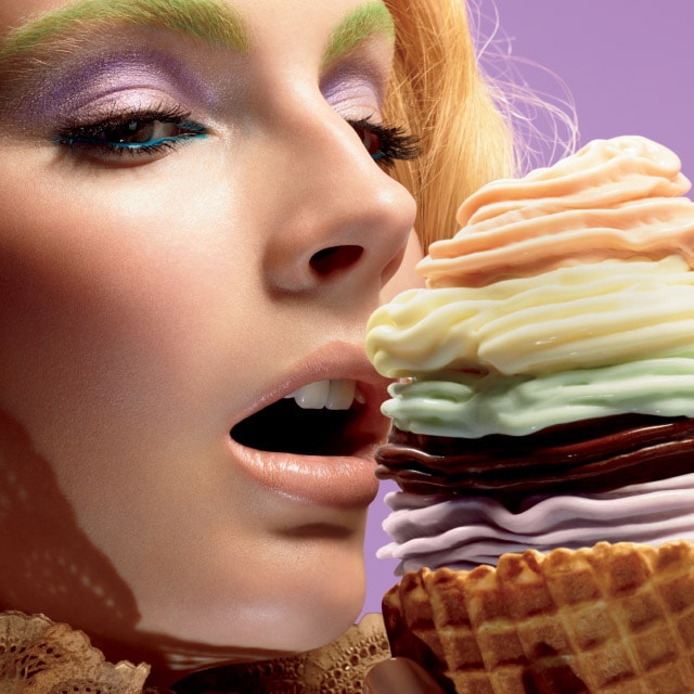 Try overindulging on servings of Soft Serve Shadow, featuring a distinctive creamy yet bouncy texture that sets to a powdery finish. Apply using our new 248 Small Eye Shader Brush with a flat paddle shape and synthetic fibres perfect for applying creamy shadows. Next, we dare you to give M·A·C Dare Hue! Brow Pencil a try. This gel-gliding, styling and sculpting pencil coats brows in unexpected matte colours with even pigment payoff.