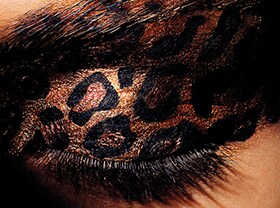 First of all, I never use my makeup correctly. I like putting eyeliner on my lips, and sometimes lipstick is good for your eyes. I don’t think there should be rules. I play with my eyebrows, Frida style. I use M·A·C Carbon on them, and I sometimes bring them to the centre or up. Or I’ll do a Siouxsie Sioux eyebrow. I think more is more! My most natural look is far from natural.