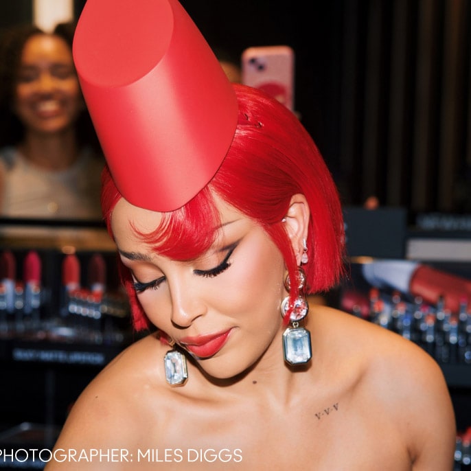 Doja Cat gave “I Only Wear M·A·C” new meaning as she showed up to M·A·C Match Day dressed as a life-sized Lady Danger Lipstick to meet and greet fans at Glendale Galleria in California. Get her statement-making look inspired by her signature siren-red shade.